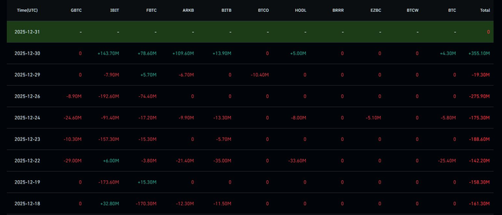 📊 INSIGHT: Spot Bitcoin ETFs pull in $355M, snapping 7-day outflow streak.IBIT led inflows as institutional demand held firm despite year-end holiday liquidity.